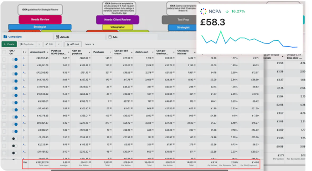 We work with your budget — whether that's $2k/month or $20k/month. We don't waste spend. We use bid caps and cost caps in the ad manager to control costs meaning ads will not spend unless Meta expects sales, and we only scale when we find profitable creatives. No reckless spending. We have strategies that lower CAC massively before we ever push budget up and to save on all areas of the business whether that is UGC or software.